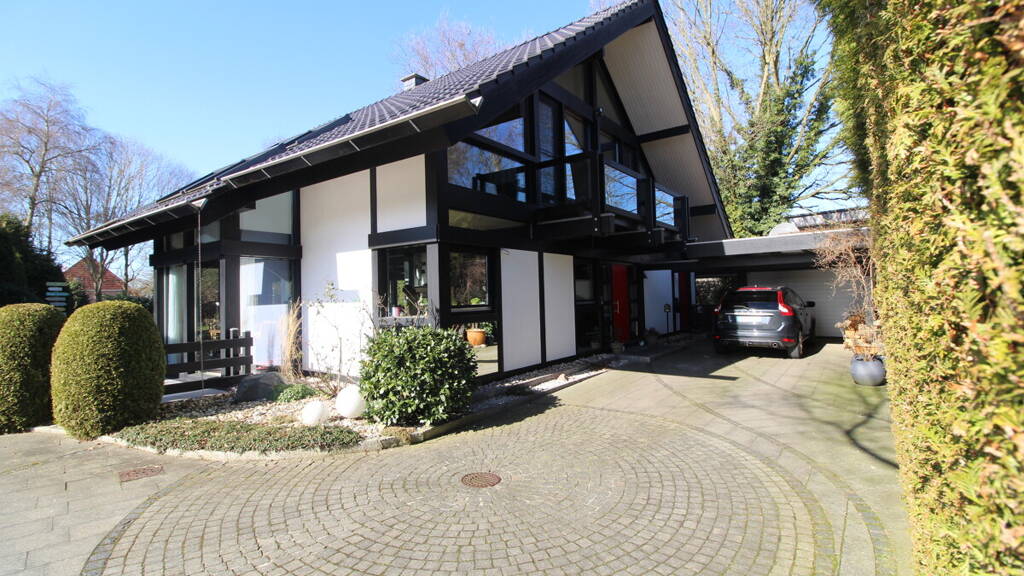 Exklusives, idyllisches Architektenhaus mit besonderer Architektur, Traumgarten& 80 qm Garagenanlage