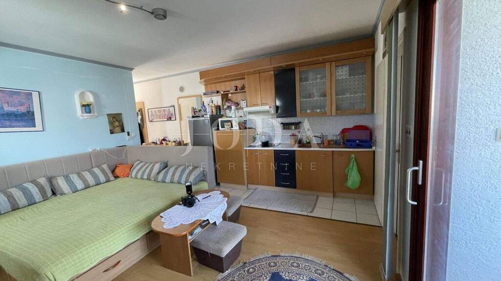 Wohnung am Meer, in der Nähe von Malinska. Die Wohnung hat eine Fläche von 47,53 m2 und besteht aus einem Flur, einem Schlafzimmer, einer Küche und einem Wohnzimmer, einer Speisekammer und einem Badezimmer. Von der Küche und dem Wohnzimmer hat man Zugang zur Loggia von 4,45 m2 mit seitlichem Meerblick. Das Gebäude wurde 2002 erbaut, regelmäßig gewartet und befindet sich in gutem Zustand. Die Immobilie verfügt über 1 Parkplatz. Die Entfernung zum Strand beträgt 300 m und zum Stadtzentrum ca. 500m.