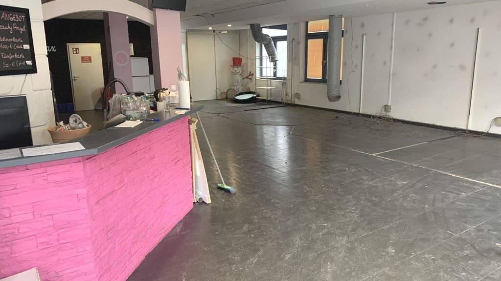 Rückwärtig befindet sich ein Personalraum/Teeküche, ein Büro sowie ein WC.