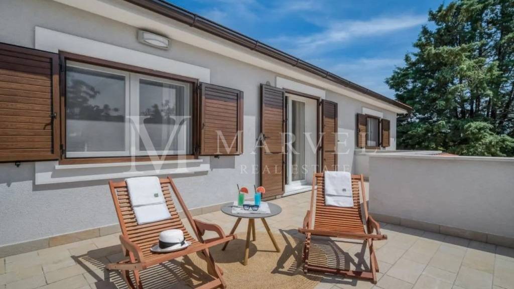Renoviertes Steinhaus mit mediterranem Garten Insel Krk, Dobrinj, Kras! Zum Verkauf steht ein charmantes Steinhaus im ruhigen Ort Kras, in der Gemeinde Dobrinj auf der Insel Krk. Die Immobilie wurde vollständig renoviert und bietet modernen Wohnkomfort, ohne den traditionellen Küstenstil zu verlieren. Die Wohnfläche von 169 m umfasst: