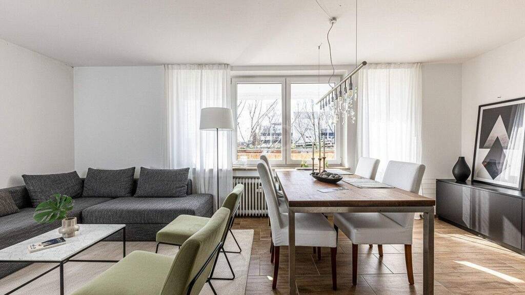 Der großzügige Eingangsbereich schafft beim Betreten sofort ein offenes und harmonisches Raumgefühl, das sich durch die gesamte Wohnung zieht. Die Wohnung wurde umfassend modernisiert und mit hochwertigen Materialien ausgestattet. Die geräumige Einbauküche, ausgestattet mit modernen Siemens-Geräten, besticht durch zeitloses Design und hohe Funktionalität. Dank durchdachter Stauraumlösungen und ausreichend Platz für einen Esstisch ist sie der perfekte Ort für gemeinsame Kochabende.