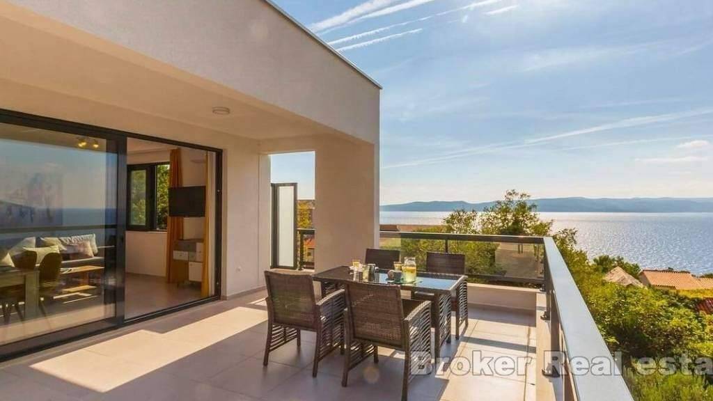 Die Villa liegt am Fuße des Biokovo-Gebirges, in einer kultivierten Umgebung, auf einem sanften Hügel, der von allen Bereichen einen Blick auf das Meer bietet.