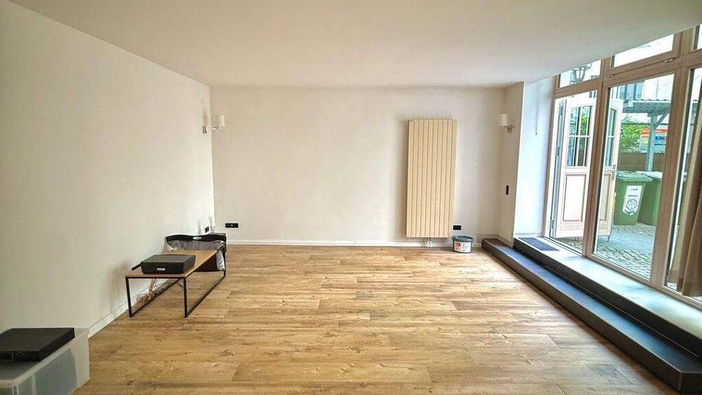 Die untere Ebene bildet den kommunikativen Mittelpunkt der Wohnung. Hier befinden sich die großzügigen Gemeinschaftsbereiche mit Wohnzimmer, Küche und Badezimmer. Der Wohnbereich überzeugt durch seine offene, ruhige Atmosphäre und viel Licht. Große Fensterflächen schaffen eine angenehme Helligkeit und lassen den Raum noch weitläufiger wirken.