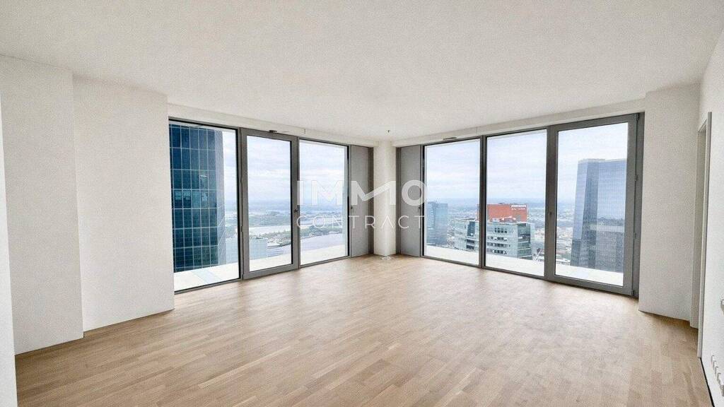 DIESE AUSSERGEWÖHNLICHE 3-ZIMMER-ECKWOHNUNG IM DC2 TOWER VEREINT GROSSZÜGIGES RAUMGEFÜHL MIT SPEKTAKULÄRER WEITSICHT. DURCH DIE ECKLAGE PROFITIEREN SIE VON ZWEI AUSSENFLÄCHEN UND EINEM EINZIGARTIGEN PANORAMA MIT BLICK AUF WIEN, SOWIE DEN KAHLENBERG, LEOPOLDSBERG UND DIE DONAU. DIE WESTLICHE AUSRICHTUNG SORGT FÜR LICHTDURCHFLUTETE RÄUME UND EINDRUCKSVOLLE SONNENUNTERGÄNGE ÜBER DER SKYLINE. DIE BEIDEN LOGGIEN - EINE CA. 25 M² GROSSE HAUPTLOGGIA UND EINE ZWEITE CA. 15 M² GROSSE LOGGIA - ERWEITERN DEN WOHNRAUM INS FREIE UND SCHAFFEN PRIVATE RÜCKZUGSORTE ÜBER DEN DÄCHERN DER STADT.