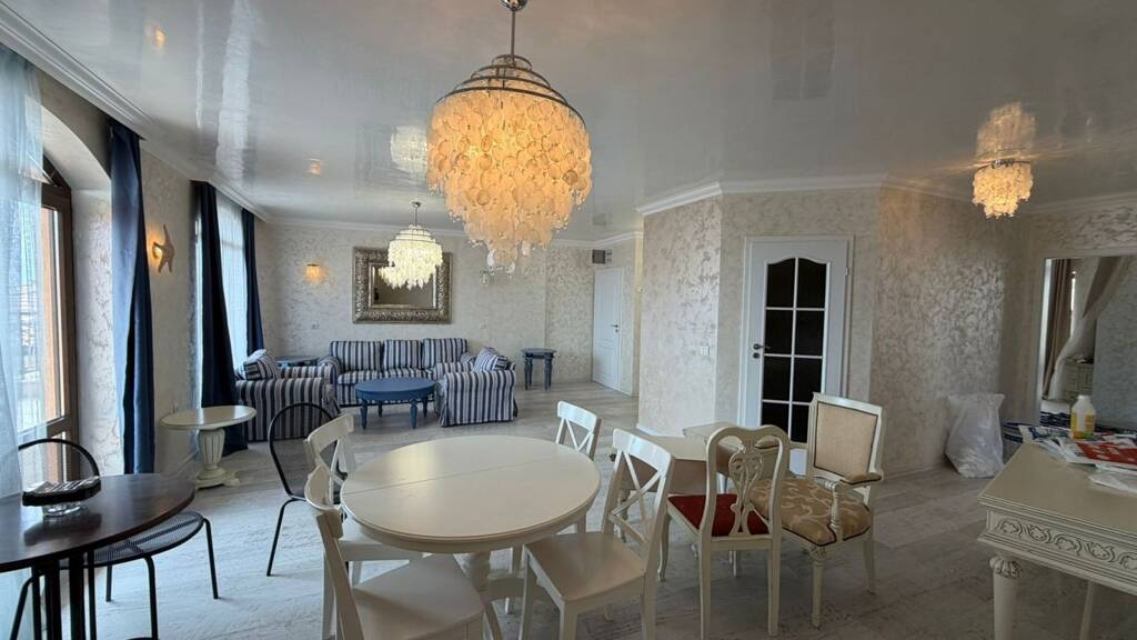 Die Wohnung hat eine Fläche von 176 m². Die Raumaufteilung umfasst ein Wohnzimmer, zwei Schlafzimmer, eine Küche mit Essbereich sowie ein Badezimmer. Große Fenster und Balkone sorgen für viel Tageslicht und schaffen ein großzügiges Raumgefühl.