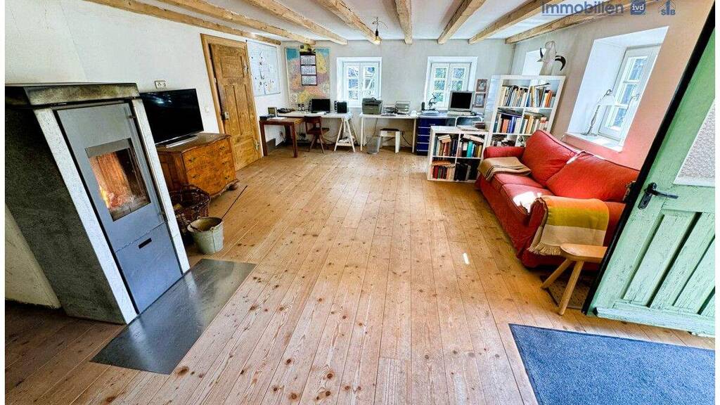 Der ehemalige Stall und Stadel verleihen dem Anwesen zusätzliches Potenzial. Im Inneren eröffnen sich vielseitige Möglichkeiten - ob als Atelier, Büro, Werkstatt oder Garage.