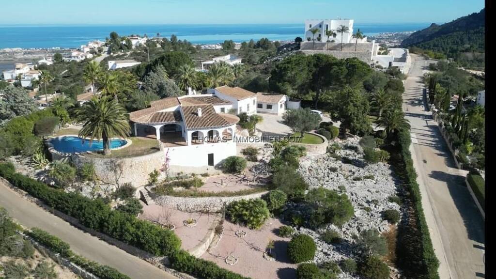 Diese beeindruckende Villa im traditionellen Stil vereint mediterranen Charme mit modernem Komfort und einer traumhaften Lage am Monte Pego an der Costa Blanca. Das Anwesen begeistert durch hochwertige Ausstattung, großzügige Räumlichkeiten und einen weitläufigen Außenbereich, der keine Wünsche offenlässt. Dank der südwestlichen Ausrichtung können Sie hier den ganzen Tag über die Sonne genießen und wunderschöne Sonnenuntergänge erleben. Auf der Hauptebene finden sich drei elegante Schlafzimmer, die jeweils über ein eigenes Badezimmer verfügen und dadurch höchsten Komfort und Privatsphäre garantieren. Das großzügige Wohnzimmer mit seinen extra großen Panoramafenstern bietet einen unvergesslichen Blick auf das Mittelmeer und die malerische Umgebung. Die angrenzende Küche ist großzügig und funktional gestaltet. Die Außenbereiche laden zum Verweilen und Genießen ein. Eine großzügige Terrasse mit Sitz- und Liegemöglichkeiten bietet den perfekten Ort, um die Ruhe der Natur zu erleben. Der glitzernde Pool sorgt für Erfrischung, während die überdachte Terrasse und die komplett ausgestattete Außenküche ideal für gesellige Abende im Freien sind. Das Haus verfügt zusätzlich über eine separate Gästewohnung im unteren Bereich. Diese bietet ein Wohnzimmer, eine Küche, ein Schlafzimmer und ein Badezimmer und ist damit ideal für Gäste oder als unabhängiger Bereich für Familienmitglieder. Eine große Garage ergänzt das Anwesen und bietet ausreichend Platz für Fahrzeuge sowie zusätzlichen Stauraum. Der traditionelle Finca-Stil des Hauses mit seinen charmanten Details wie Holzbalken und anderen mediterranen Elementen fügt sich harmonisch in die traumhafte Landschaft ein. Das Grundstück ist großzügig angelegt, mit gepflegten Gärten und einer herrlichen Aussicht. Dieses exklusive Anwesen bietet ein einzigartiges Wohngefühl und eine ideale Kombination aus Ruhe, Komfort und mediterraner Lebensqualität.