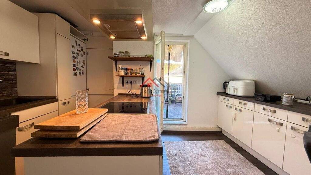 Von der Küche aus gelangen Sie direkt auf die südwestlich ausgerichtete Dachterrasse, die zum Entspannen, Sonnen und Verweilen einlädt - ideal für gemütliche Abende mit Familie und Freunden.