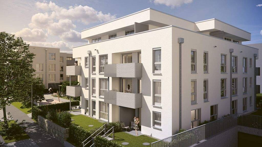 Wohnen im Neubaugebiet »Hahnenweide«: Das Siedlungswerk erstellt hier insgesamt 18 Eigentumswohnungen und 19 Mietwohnungen - verteilt auf 3 Gebäude. Die Eigentumswohnungen verfügen über 2 bis 5 Zimmer, 48 bis 115 m² Wohnfläche, Balkon bzw. Terrasse. Die Erdgeschosswohnungen erhalten Gartenanteile zur privaten Nutzung.