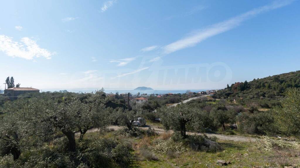 Feld, Sithonia, 5962 m??, Meerblick, freie Sicht, freie Sicht, westliche Ausrichtung, außerhalb des Dorfes, schräg, nah am Meer, südliche Ausrichtung, Panorama, Gesichter Hauptstraße, natürliche Schönheit, bewaldet, Olivenfeld innen, vollständig - Baubar, perfekt für den Hausbau, perfekt für den Villenbau
