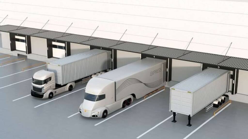 - ca. 12 Sektionaltore auf Rampenhöhe mit Überladebrücken und außenliegendem Wetterschutz