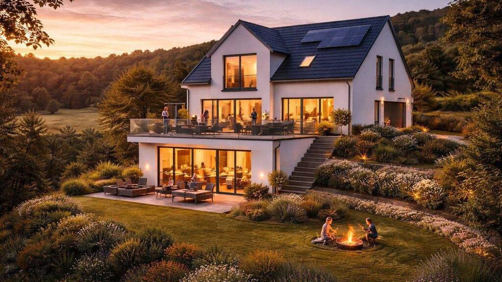 Grundstück im Preis inbegriffen. Zuzüglich der ortsüblichen Baunebenkosten.