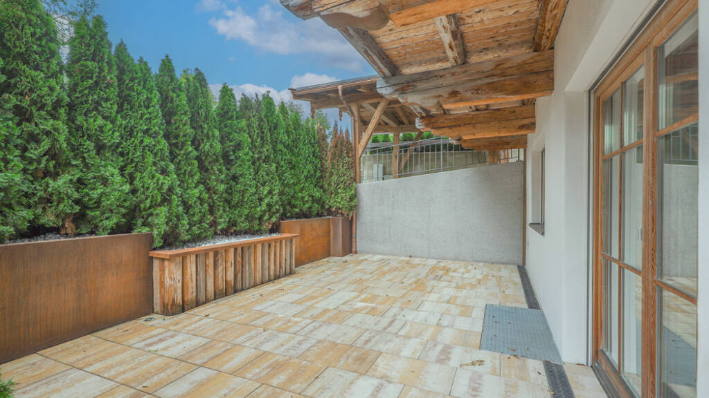 Eine großzügige und uneinsichtige Terrasse ist von den Schlafzimmern zugänglich.