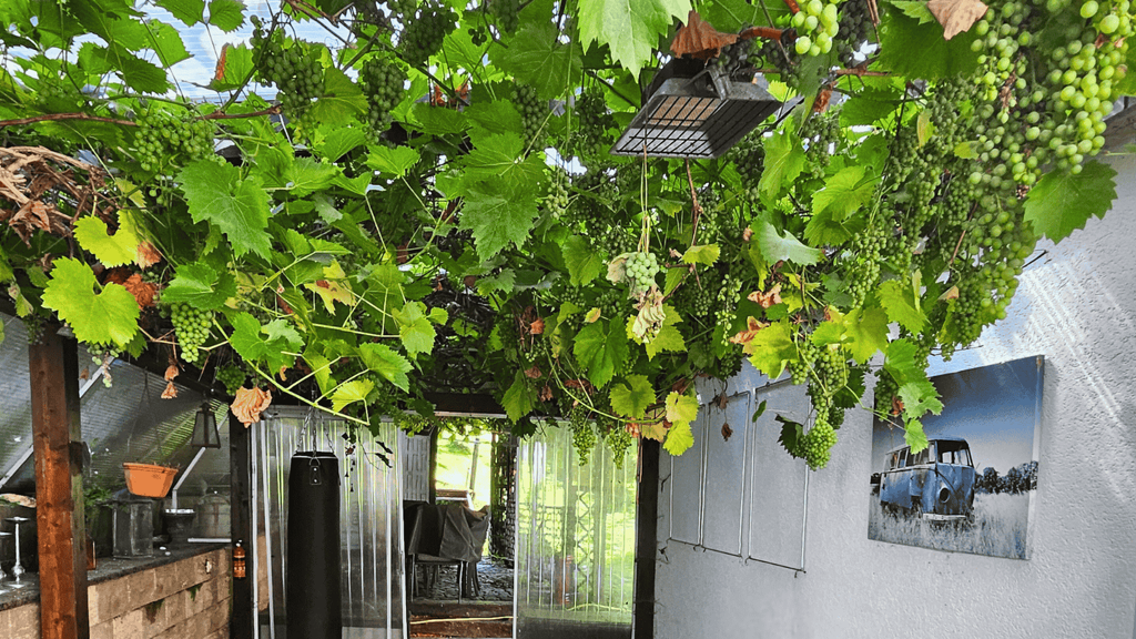 Die Weinlaube mit den vielen Weinreben rundet das Ambiente für die gemeinschaftlichen Abende ab.
