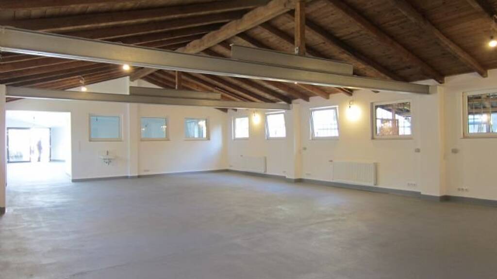 Die Halle und Büroanteil ist sehr hell und freundlich. Die großen Fenster geben allen Räumen sehr viel Licht. Der Boden im Büro ist mit einem hochwertigen edlen Vinylboden verlegt. Eine neue Klimaanlage sorgt für ideale Temperaturen. Im Büro und in der Halle sind Wasseranschlüsse vorhanden. Das Badezimmer ist ebenfalls sehr hochwertig saniert und ausgestattet.