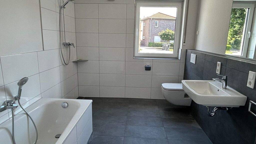 Diese neuwertige Erdgeschosswohnung, die im Jahr 2024 erbaut wurde, bietet modernen Wohnkomfort auf ca. 97 m². Die Wohnung besticht durch ihre durchdachte Raumaufteilung, die Ihnen drei großzügige Zimmer, darunter zwei ansprechende Schlafzimmer, zur Verfügung stellt. Das lichtdurchflutete Wohnzimmer lädt zum Entspannen ein und führt direkt auf die einladende Terrasse - ideal für laue Sommerabende.