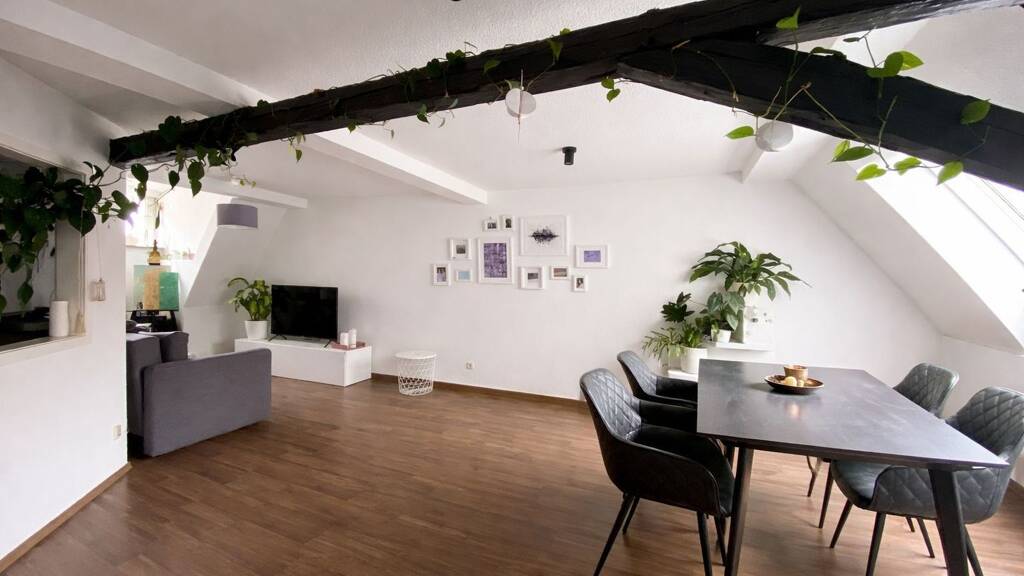 In der Regierungsstraße 4 in Erfurt befindet sich diese 2,5-Zimmer-Wohnung mit individuellem Grundriss und dem besonderen Charme einer Dachgeschosswohnung. Charakteristische Schrägen verleihen den Räumen eine gemütliche Atmosphäre und sorgen für ein wohnliches Ambiente.