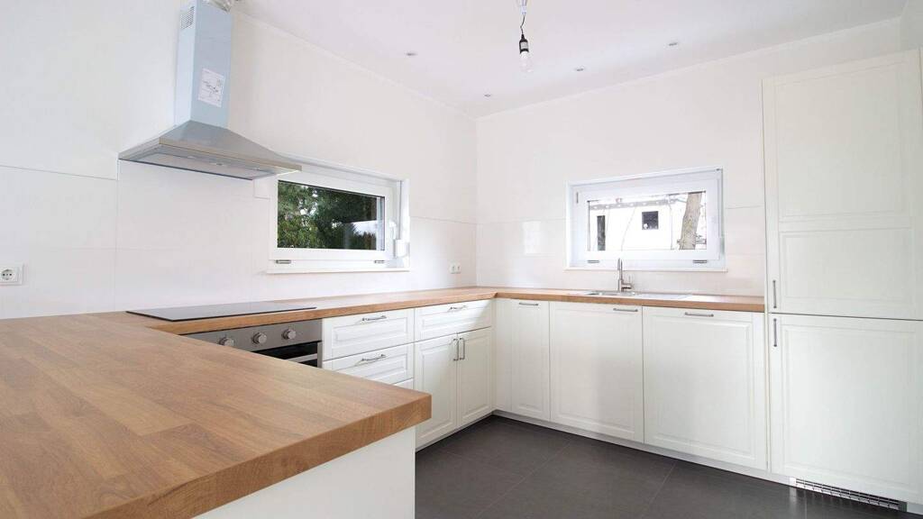 Die Küche ist harmonisch in den Wohnbereich integriert und bietet ausreichend Platz für gemeinsames Kochen und gesellige Abende mit Familie oder Freunden.