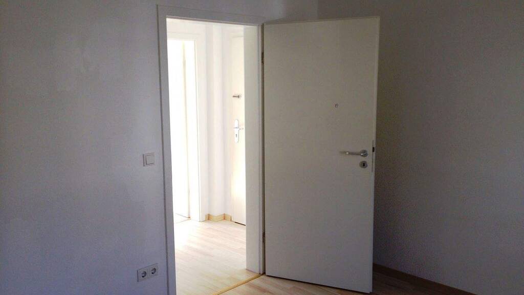 Die Wohnung verfügt über einen Laminatboden in Wohn-/Küche, Schlafzimmer und Dusche. Im Badezimmer sind Fliesen verlegt. Die Küche verfügt zudem über einen modernen, weißen Fliesenspiegel.