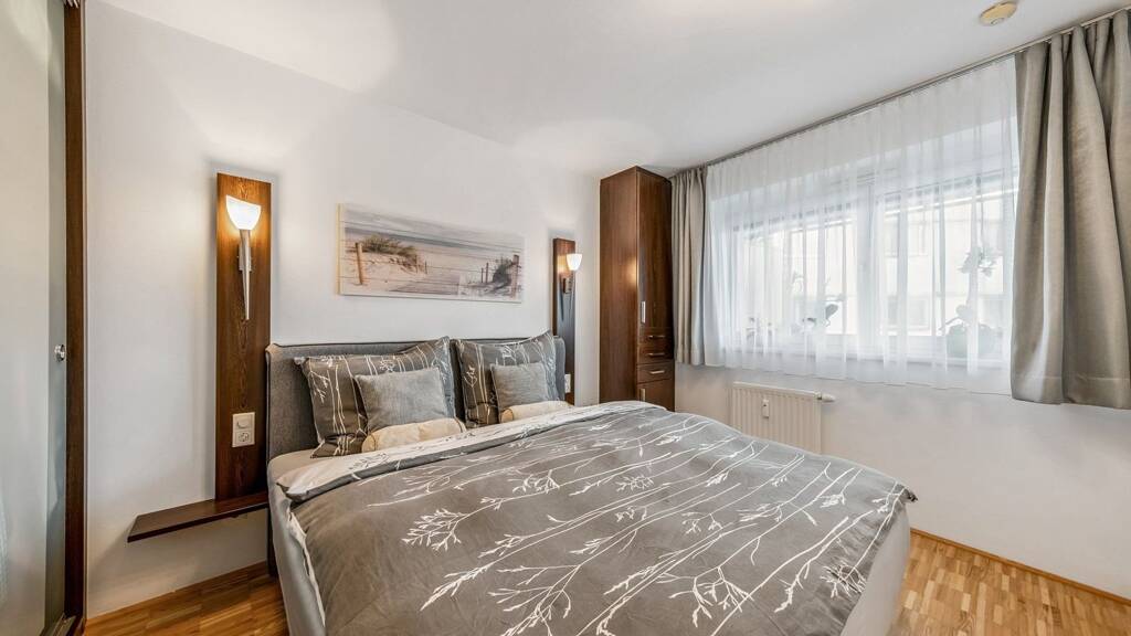 Das Schlafzimmer bietet ausreichend Platz für erholsame Nächte und überzeugt ebenso durch seine ruhige Ausrichtung. Das Badezimmer ist funktional gestaltet und ergänzt das Raumangebot ideal. Ein besonderes Highlight ist der großzügige Balkon mit 13,70 m², der zusätzlichen Wohnraum im Freien schafft und zu entspannten Stunden einlädt.