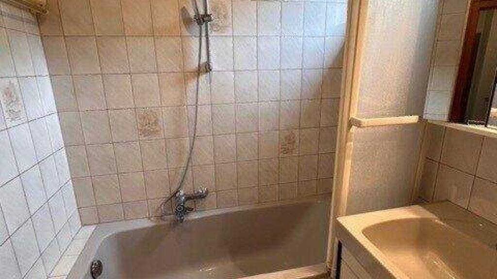 Das Badezimmer mit Fenster und Badewanne bietet Komfort und Tageslicht, während Abstellraum, Kellerabteil und Balkon den Wohnalltag angenehm abrunden.