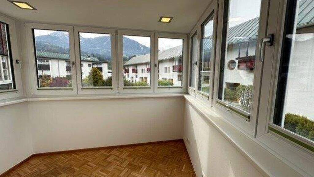 Das großzügige Wohnzimmer mit verglaster Veranda bildet das Herzstück der Wohnung - ein Ort zum Ankommen, Abschalten und Leben. Der moderne Pelletsofen sorgt an kühleren Tagen für wohlige Wärme und eine gemütliche, fast schon alpine Wohnatmosphäre.