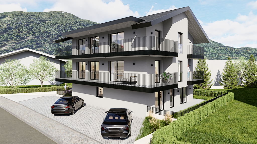 Die Wohnung besticht durch ihre ruhige Lage und den beeindruckenden Blick auf die umliegende Bergwelt. Ein Autoabstellplatz ist optional erhältlich.