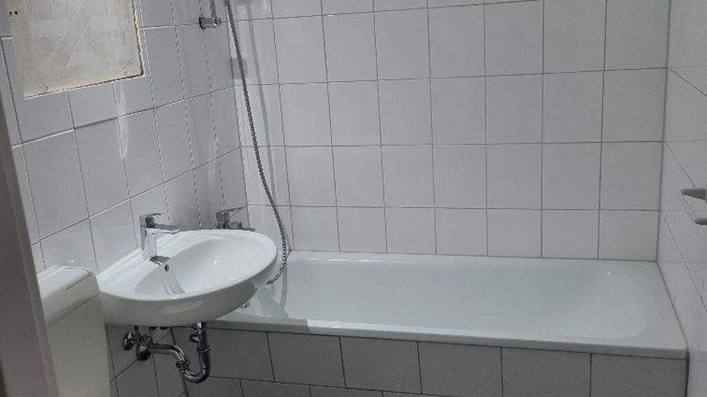 Die Wohnung befindet sich im EG eines Mehrfamilienhauses. Sie hat 2 etwa gleich große Zimmer, Küche und Bad mit Badewanne.