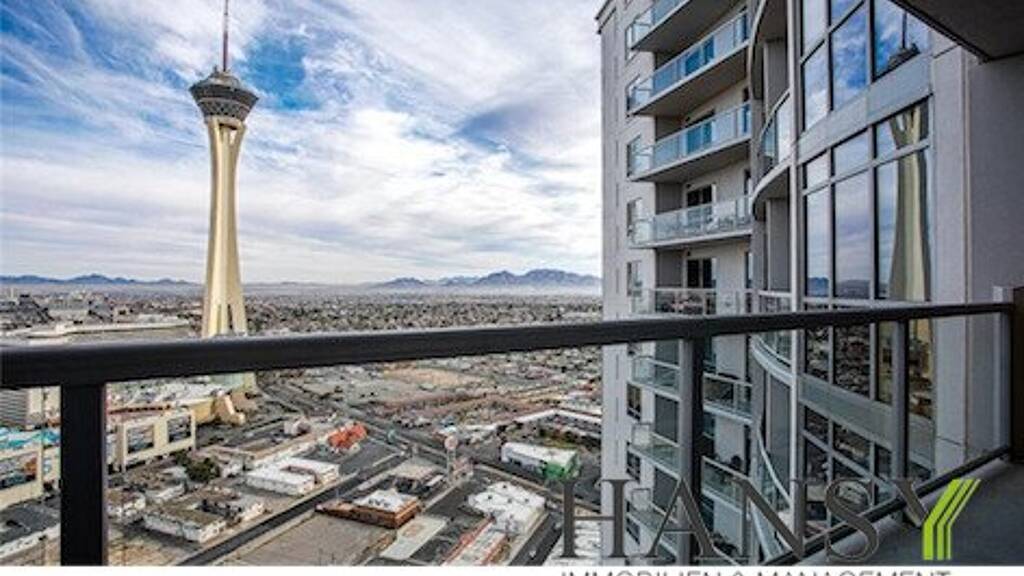 Diese hochwertig ausgestattete Eigentumswohnung befindet sich im 31. Stock eines modernen Hochhauses und bietet einen beeindruckenden Blick auf Downtown Las Vegas sowie den STRAT Tower. Die Wohnung verfügt über hochwertige Böden, moderne Beleuchtung sowie eine Waschmaschine und einen Trockner.
