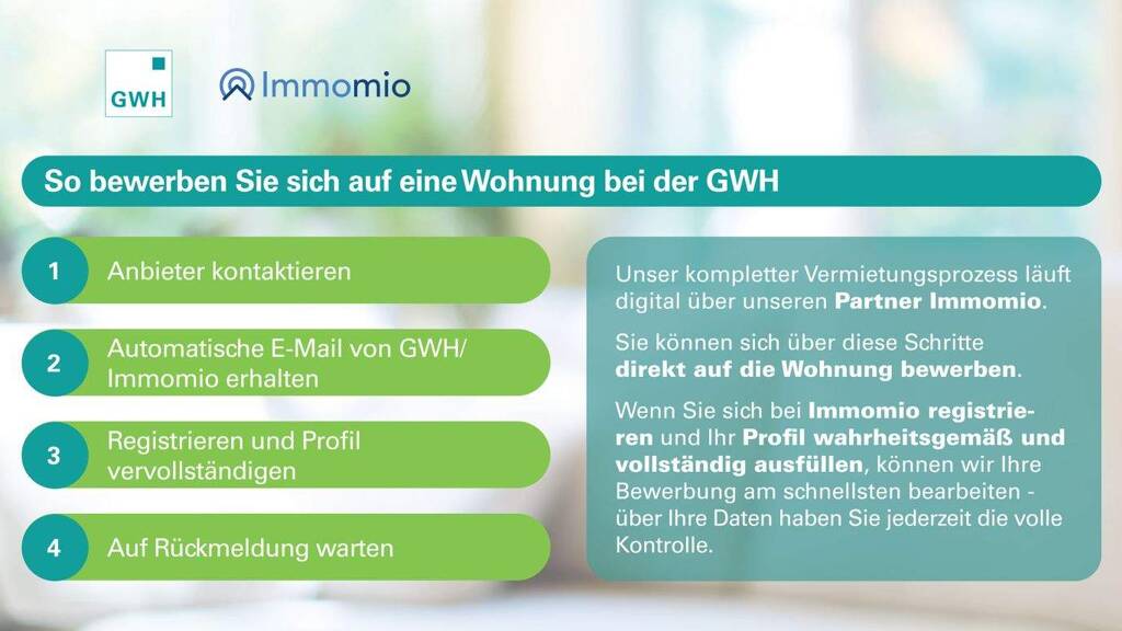 Eine Anmietung ist nur über Immomio möglich, das heißt, Sie müssen sich in jedem Fall registrieren.