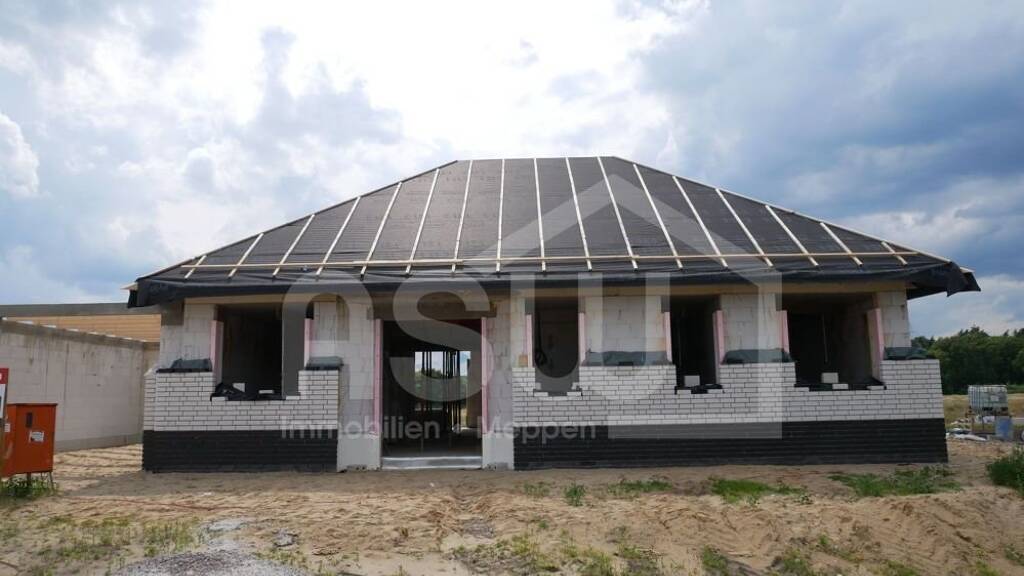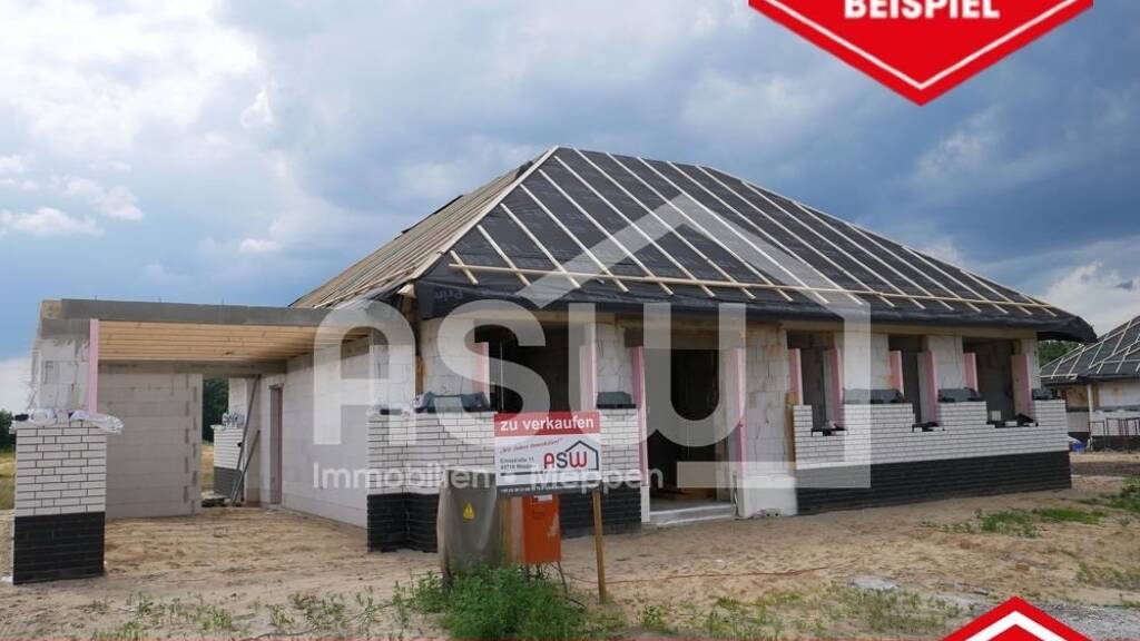 Musterhaus! Sehr geräumiger Neubaubungalow mit Winkelwalmdach und massiver Garage in Südlage