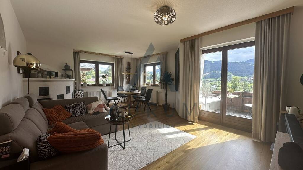 Diese gemütliche möblierte Wohnung im Dachgeschoss eines Mehrfamilienhauses in ruhiger und sonniger Lage von Ellmau bietet einen wunderschönen Berg- & Fernblick.