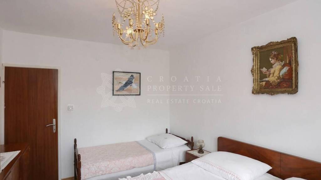 House has 3 apartments. Ground floor apartment has about 100 sq.m. and consist of large living room with dining and kitchen, 2 bedrooms, hallway and bathroom. Outside are terraces from both sides of the house, for enjoying in fresh air, and there is small garden in which is garden house that is turned into studio apartment.