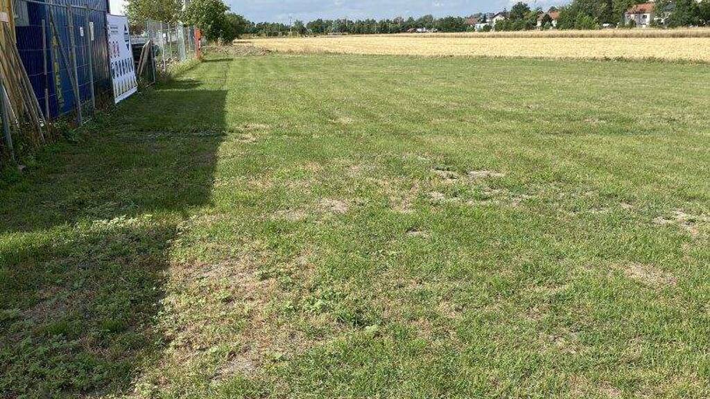 Das Grundstück ist eingezäunt und der Grund ist eine ungenutzte bzw. nicht bebaute Grünfläche.