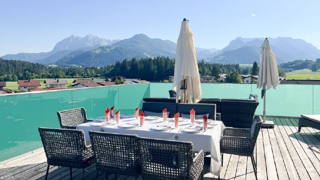 Luxuriöses Penthouse mit großer Terrasse und unverbauten Blick in die Kössener Bergwelt