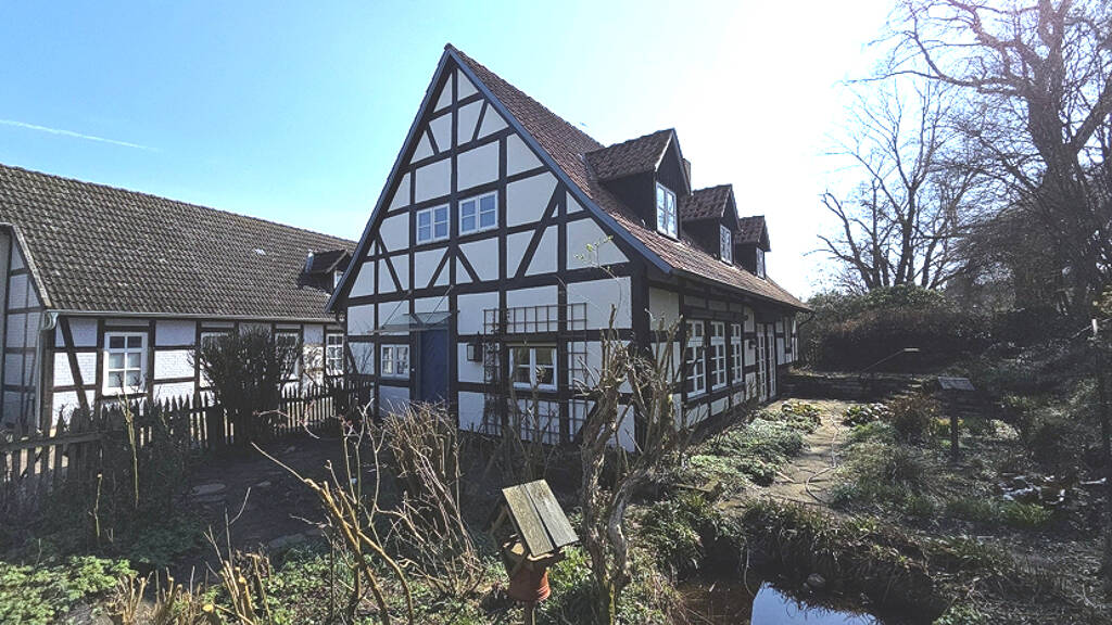 Diese außergewöhnliche, denkmalgeschützte Wassermühle aus dem Jahr 1716 beeindruckt als seltenes Zeugnis historischer Baukunst und bietet ein einzigartiges Wohnambiente mit besonderem Charme. Das ursprüngliche Fachwerkgebäude wurde 1987 nach Entfernung späterer, nicht historischer Anbauten umfassend und denkmalgerecht kernsaniert. Dabei wurde der ehemalige Mühlenteil mit viel Sorgfalt und hochwertigen Materialien zu Wohnzwecken ausgebaut.