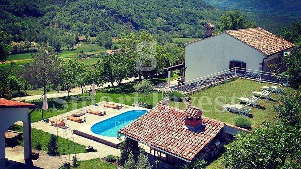 Auf dem istrischen Anwesen wachsen 280 Olivenbäume, aus denen gemäß dem seit über 10 Jahren gültigen Öko-Zertifikat Öl höchster Qualität gewonnen wird. Das Anwesen verfügt außerdem über drei Häuser mit insgesamt neun Schlafzimmern und sieben Bädern sowie einen Swimmingpool im Garten, umgeben von viel Grün, Lavendelfeldern und unberührter Ruhe. In Kürze wird in einem der drei Gebäude auch eine Sauna eingerichtet.