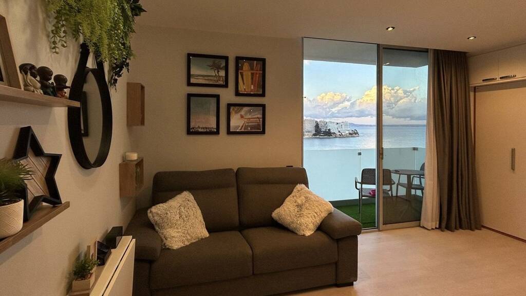 Direkt im beliebten Vier-Sterne-Superior-Hotelkomplex Meliá South Beach in Magaluf liegt dieses Studio im 10 Stockwerk. Auf 34?qm bietet es modernen Wohnkomfort mit Doppelbett, Schlafsofa, Arbeitsbereich und offener Küche. Die großzügige Terrasse/Balkon ist ein echtes Highlight: hier genießen Sie den Panoramablick auf das türkisfarbene Meer - perfekt für entspannte Momente.
