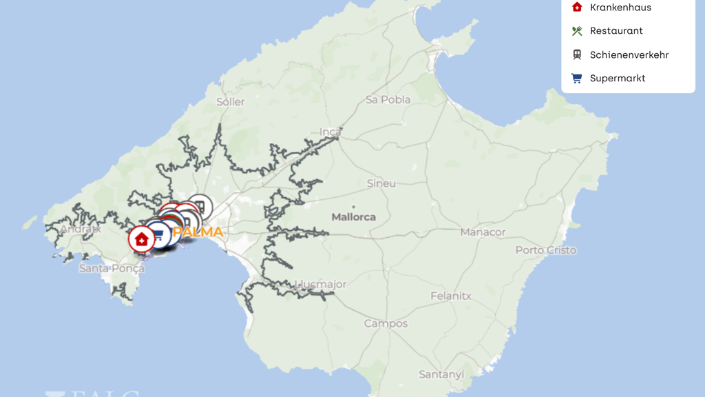 Alltag und Versorgung Für die täglichen Besorgungen ist ein Supermarkt wie Eroski in der Nähe und damit schnell erreichbar. Auch medizinische Versorgung ist gut abgedeckt, mit Arztpraxen in der Umgebung sowie der UBS Bendinat in der Nähe. Ergänzt wird das Angebot durch weitere Einrichtungen wie Zahnärzte und Kliniken im weiteren Umfeld.