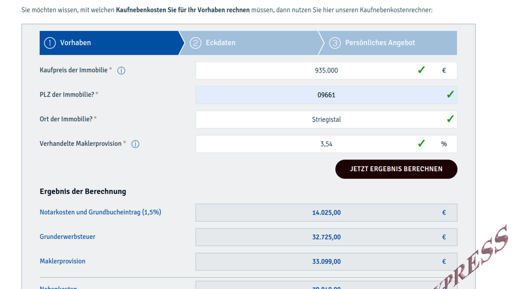 Eintragung ins Grundbuch und Notar für Kaufvertrag: ca. 1,5 % v. Kaufpreis