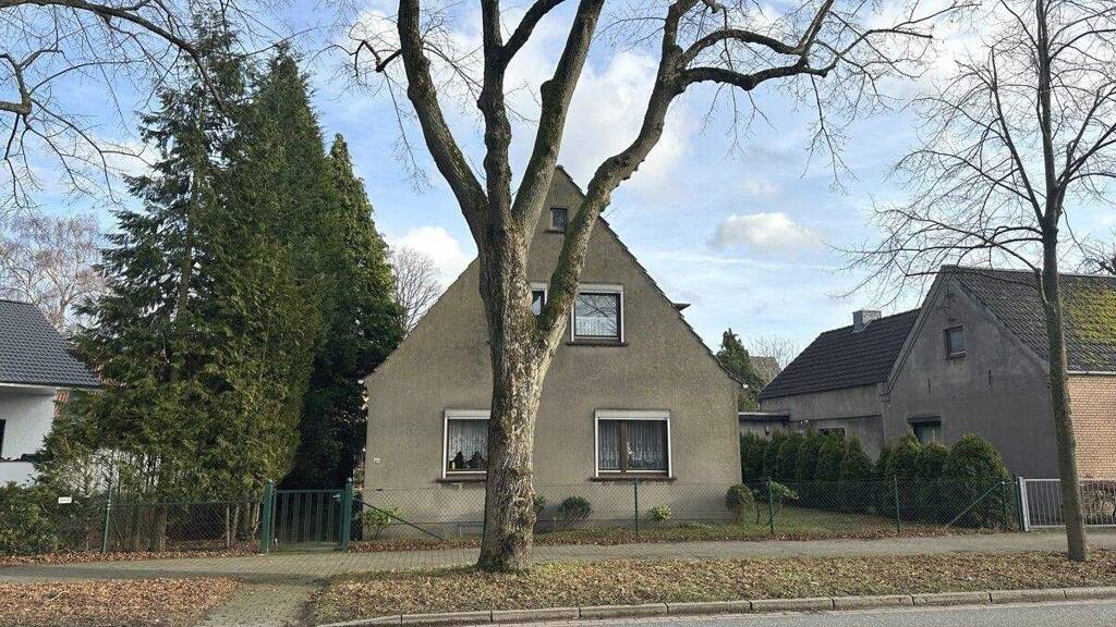 Dieses freistehende Einfamilienhaus mit einer Wohnfläche von ca. 149 m² befindet sich auf einem ca. 334?m² großen Grundstück. Es wurde ca. 1953 erbaut und bietet heute sechs Zimmer verteilt auf zwei Etagen bei folgender Aufteilung: Im Erdgeschoss betreten Sie zunächst den Flur, von dem aus Sie sowohl das Obergeschoss als auch den Teilkeller erreichen. Weiterhin gelangen Sie von hier aus in das Wohnzimmer, welches sich über zwei Zimmer erstreckt und mit einem Durchgang miteinander verbunden ist sowie die Küche. Diese ist mit einer älteren Einbauküche ausgestattet. Von einem weiteren Flurbereich aus erreichen Sie ein ca. 11 m² großes Zimmer, ein Tageslichtbadezimmer mit Badewanne und Waschmaschinenanschluss, den Heizungsraum sowie einen Flur. Von hier aus haben Sie einen Zugang zum Garten/Terrasse. Das Obergeschoss verfügt über drei weitere Zimmer, ein WC sowie eine Küche. Über eine Dachluke ist das Dachgeschoss zu erreichen, welches nicht ausgebaut ist und somit als weitere Abstellfläche dient. Das Haus ist teilunterkellert, der Keller besteht aus zwei Räumen und eignet sich gut zur Vorratshaltung oder als Lagerfläche. Darüber hinaus bietet das Grundstück durch seine Größe ideale Gestaltungsmöglichkeiten für Familien oder den geneigten Gartenliebhaber. Weitere Lagerfläche bietet der Abstellraum, welcher sich im hinteren Bereich des Grundstückes befindet.