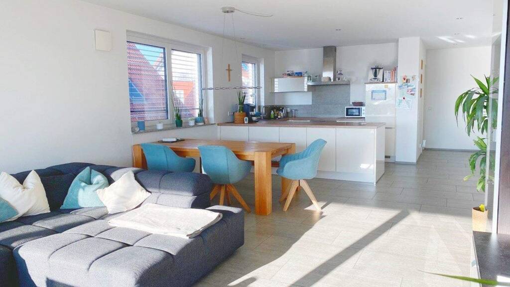 Diese Eigentumswohnung befindet sich im 2. Obergeschoss eines Wohn- und Geschäftshauses in zentraler Lage von Oberteuringen. Sie erreichen einen Lebensmittelmarkt, Ärzte und Apotheke, Banken und die Grundschule in wenigen Gehminuten.