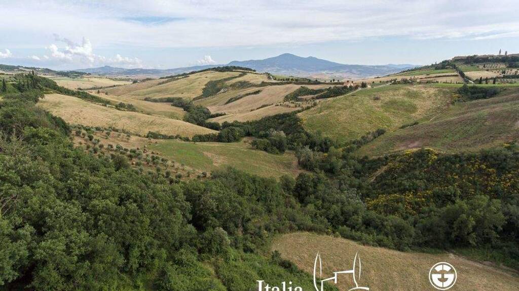 Dieses interessante Anwesen inmitten der Landschaft, in ruhiger und zurückhaltender Lage mit Blick auf Pienza, besteht aus einem zu restaurierenden Bauernhaus auf zwei Ebenen. Das Erdgeschoss wird derzeit als Lagerraum und Keller genutzt. Im ersten Stock befindet sich der Wohnteil. Das Grundstück, das das Anwesen umgibt, ist etwa 4,67 ha groß und besteht aus einem Olivenhain und einem Weinberg.