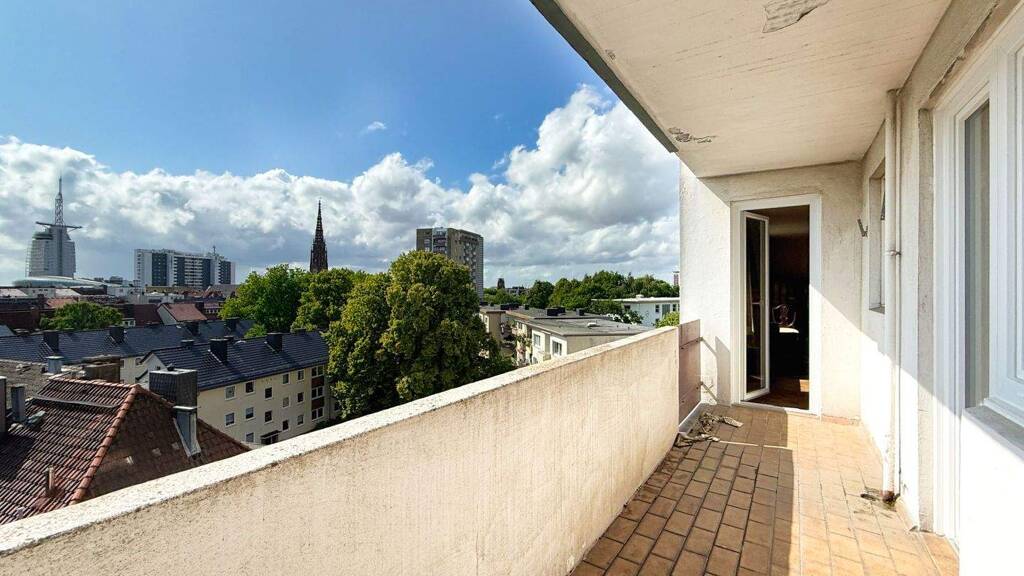 Diese großzügige 2-Zimmer-Wohnung im 5. Obergeschoss eines gepflegten Hochhauses aus dem Jahr 1960 bietet eine beeindruckende Aussicht über die Dächer der Stadt bis hin zum Columbus Center. Mit einer Wohnfläche von ca. 76 m² und einer durchdachten Raumaufteilung überzeugt sie durch ihr Potenzial zur individuellen Gestaltung.
