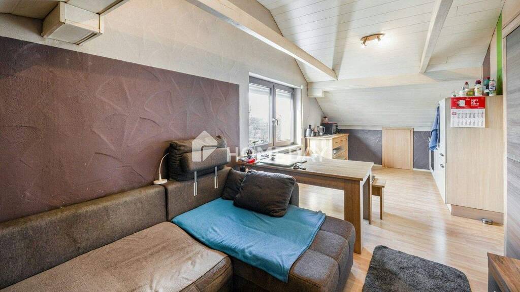 Schon beim Betreten fällt die offene, freundliche Wohnatmosphäre auf. Der Wohnbereich mit integrierter Küche bildet das Herzstück der Wohnung und wirkt durch die Dachschrägen besonders einladend. Die Küche ist vollständig ausgestattet und im Kaufpreis enthalten, ebenso wie die gesamte Möblierung wie beispielsweise: Couch, Wohnwand, zwei Tische, zwei Bänke mit Polster, Spülmaschine, Doppelbett, Badmöbel und Spiegelschrank. Zusätzlich steht ein rund 34 Quadratmeter großer Speicher zur Verfügung, der ebenfalls ausgebaut werden könnte und damit weiteres Gestaltungspotenzial eröffnet.