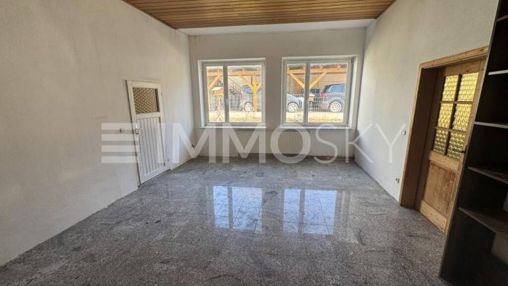 Das Haus wurde zwischen 2000-2006 renoviert. Eine große Wohnküche mit Granitboden und Vollholzdecke, sowie ein wasserführender Kaminofen mit Anbindung an das Heizungssystem begeistern im Eingangsbereich. Von dort gelangt man über eine große Vollholzdoppeltür in einen sehr großen Raum, ebenfalls mit Granitboden und Vollholzdecke. In diesen beiden Räumen wurden im Zuge der Renovierung die sehr großen Fenster komplett erneuert. Ebenso gelangt man über diesen Raum auch in den kleinen Garten, den man sich sicherlich als kleines Paradies gestalten kann.
