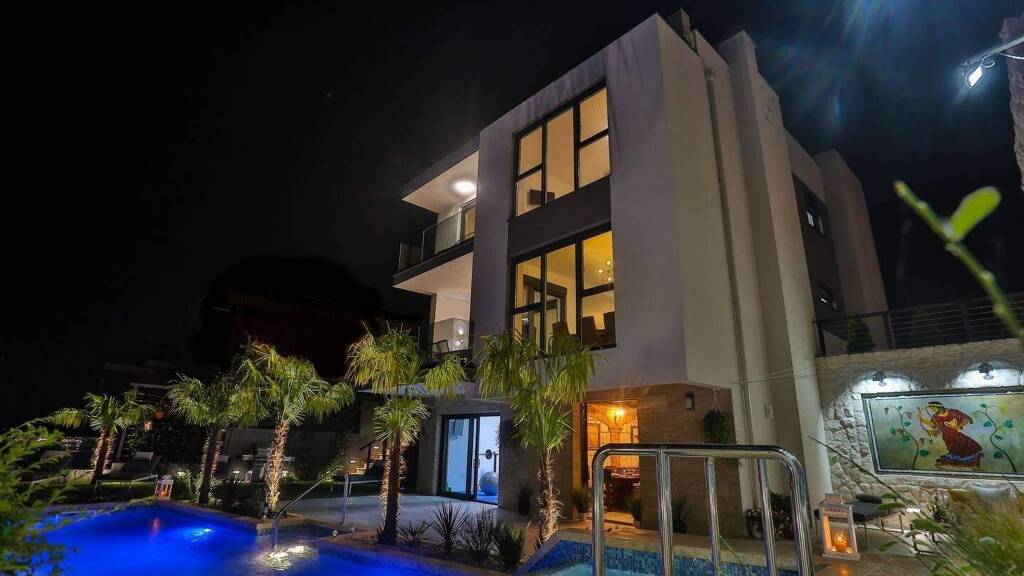 Die Villa befindet sich auf einem 521 m² großen Grundstück und bietet eine Wohnfläche von ca. 300 m², verteilt auf drei Etagen. Der 120 m² große Wohnbereich wird durch einen voll ausgestatteten Entspannungs- und Geselligkeitsbereich ergänzt. Die Inneneinrichtung ist mit künstlerischen Elementen eines kroatischen Designers bereichert, darunter das ikonische Gemälde "Spielende Pferde", das dem Haus einen einzigartigen Charakter verleiht.