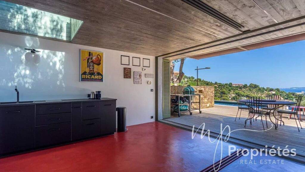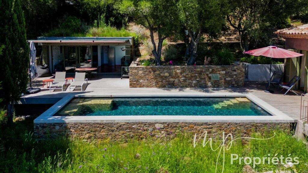 ZUM VERKAUF BORMES LES MIMOSAS - Nur wenige Schritte vom malerischen mittelalterlichen Dorf Bormes-les-Mimosas entfernt wurde diese 135 m² große Villa komplett renoviert und bietet einen atemberaubenden Meeresblick. Sie vereint Eleganz und Komfort und steht auf einem Grundstück von etwa 1500 m². Es verfügt über ein großes, leuchtendes Wohnzimmer mit Kathedralendecken, ausgestattet mit einem Holzofen und Zugang zu einer voll ausgestatteten und ausgestatteten Küche, die Modernität und Praktikabilität vereint. Die luxuriöse Master-Suite verfügt über ein privates Badezimmer mit begehbarer Dusche, Badewanne und individuell gestaltetem Umkleideraum und öffnet sich zu einer privaten Terrasse. Der terrassierte, gestaltete Garten mit seinem Salzwasserbecken (3 x 9 m) und dem Pétanque-Hof schafft eine Atmosphäre absoluter Ruhe. Ein Tor bietet direkten Zugang zum Dorf und bietet zusätzlichen Komfort. Ein unabhängiges 35 m² großes Studio-Apartment, ideal zum Gast oder zur Generierung von Mieteinnahmen, vervollständigt dieses außergewöhnliche Anwesen. Eine geschlossene Garage und zwei Parkplätze bieten zusätzlichen Komfort. Die Möglichkeit einer Erweiterung optimiert dieses einzigartige Setting weiter. Ein seltenes Anwesen im Herzen der Côte d'Azur, das Luxus, Modernität und Gelassenheit vereint.