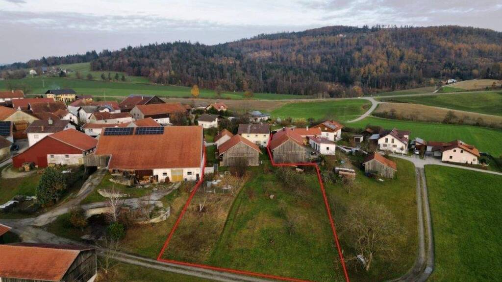 Baugrundstück, Dorfrand in ruhiger Aussichtlage, sonnig und Alpenblick