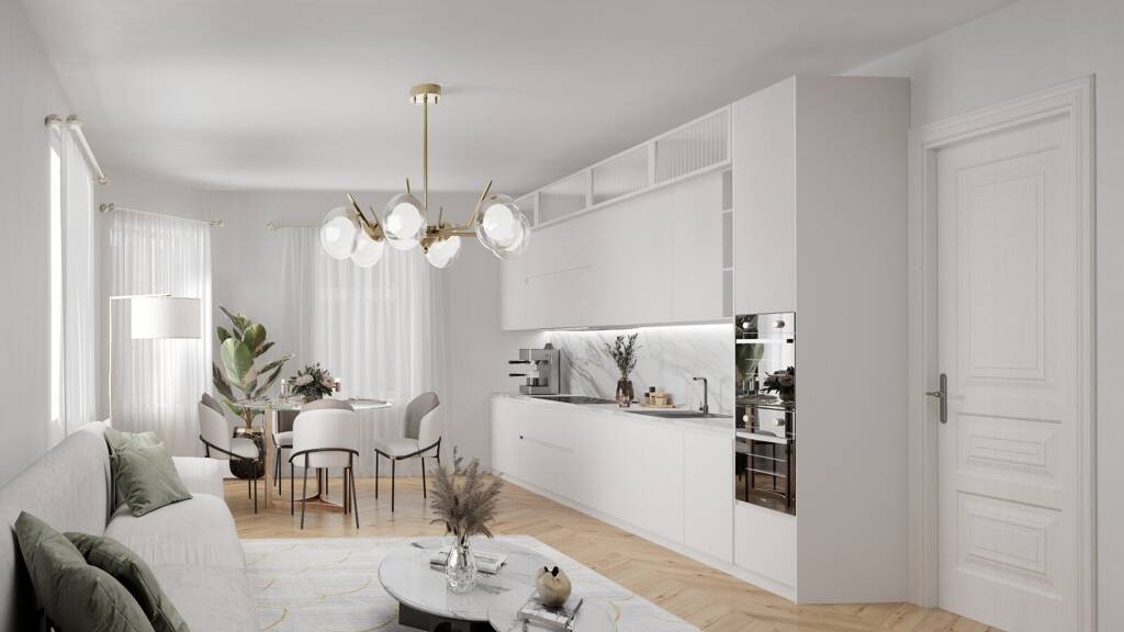 Bereits beim Betreten der Wohnungen präsentiert sich deren Ausstattung qualitativ anspruchsvoll und zeitlos elegant. Formvollendetes Design trifft auf viel Liebe zum Detail. Vom hochwertigen Fischgrätparkett bis hin zu den Armaturen und dem Fliesendesign in den Badezimmern. Die großzügige Raumhöhe unterstreicht den klassischen Wiener Altbaucharme.